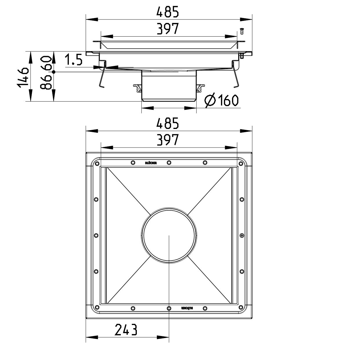 Kanał kuchenny do winylu 400x 400 odpływ DN 160, wys. wewn.60 mm
