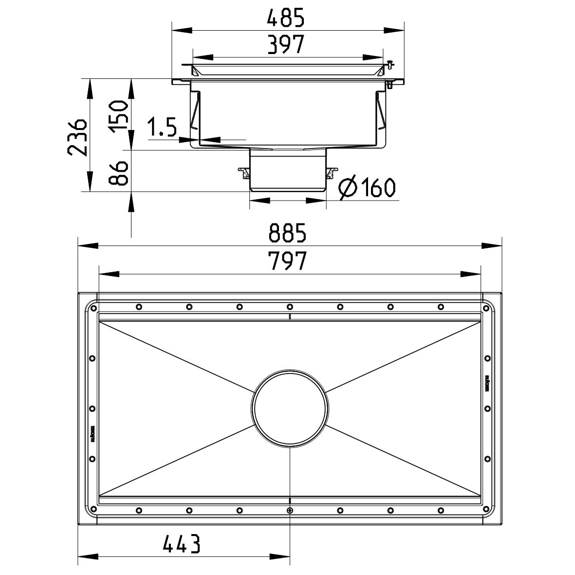 Kanał kuchenny do winylu 400x 800 odpływ DN 160, wys. wewn.110 mm