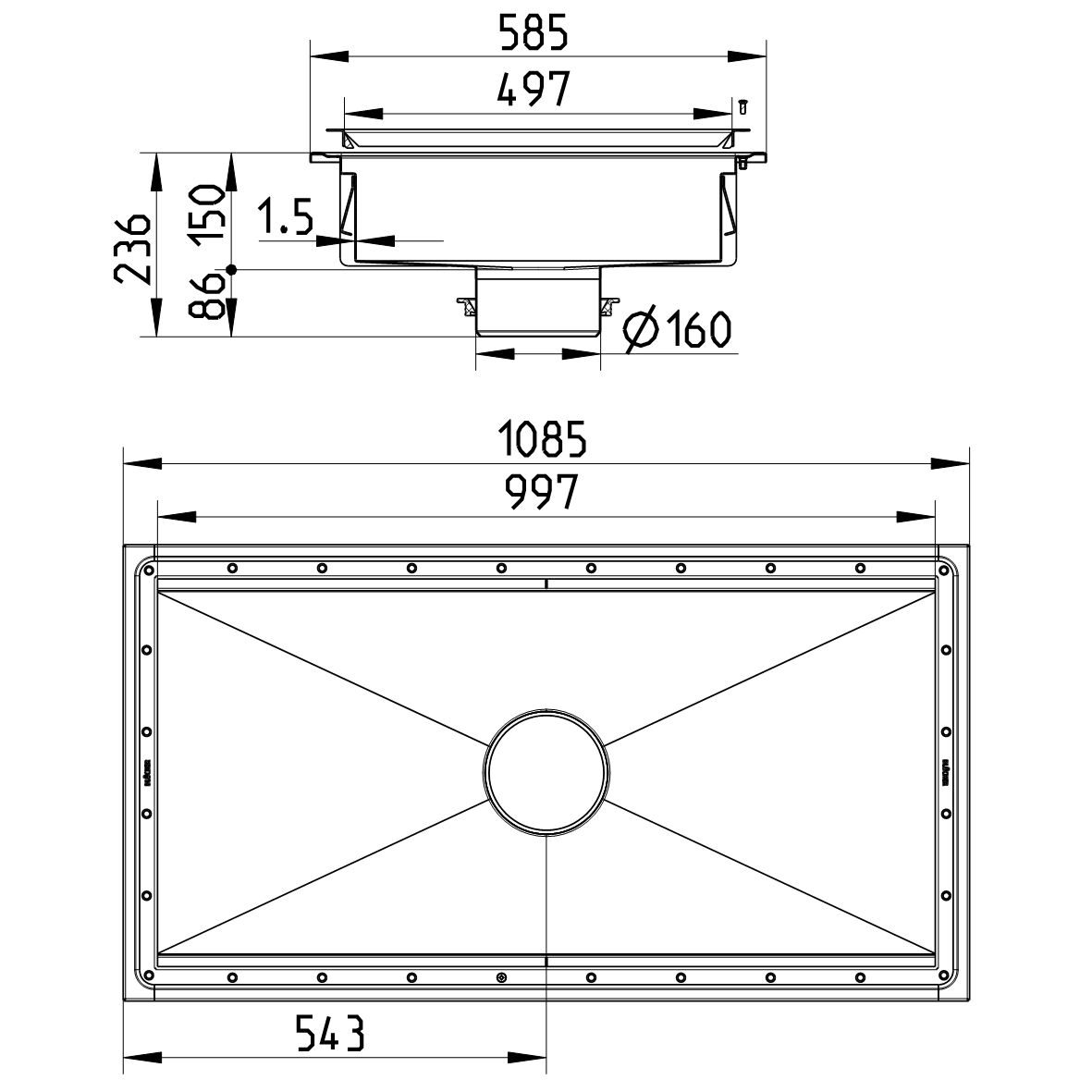 ∘ Odpływ (mm): 160