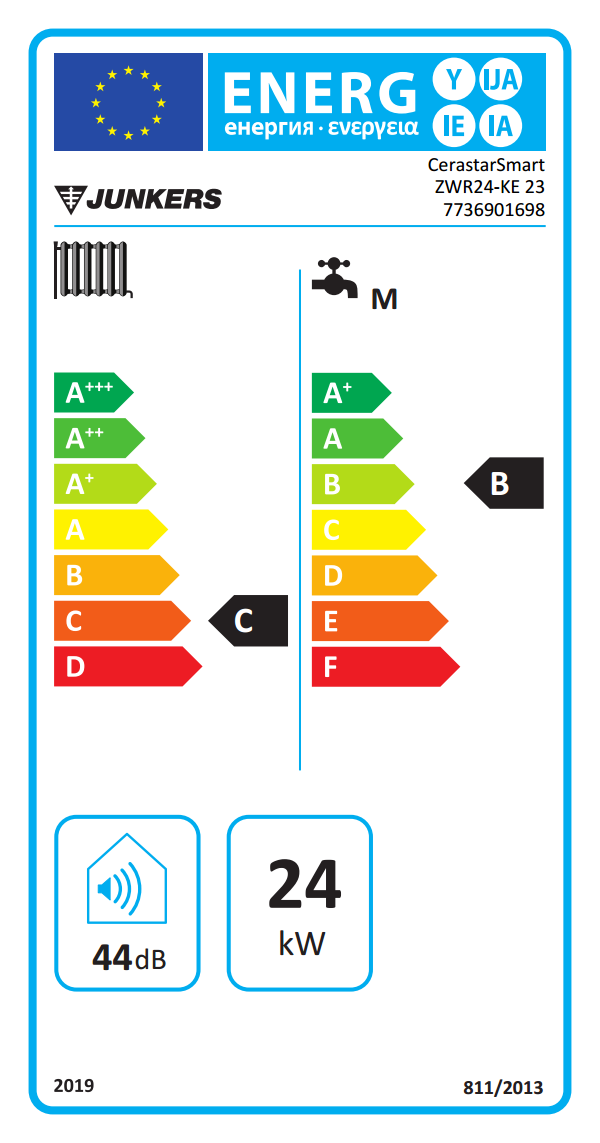 - Klasa energetyczna C (klasa B z zestawem regulatora EasyControl CT200)