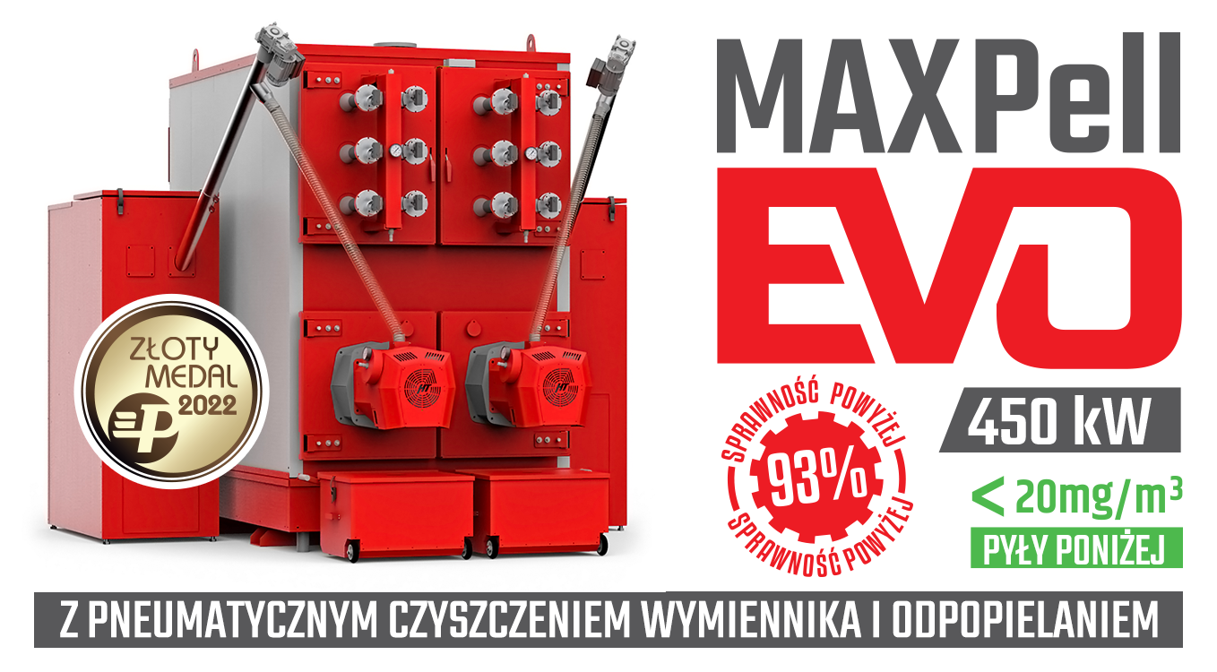 Kocioł pelletowy MAXPell EVO – kocioł średniej mocy. Budowa oparta jest na konstrukcji płomieniówkowego wymiennika ciepła Heiztechnik. Wyposażony jest w palnik automatyczny ze zgarniaczem szlaki. Procesem spalania steruje indywidualnie zaprogramowana automatyka pogodowa z autoregulacją HT-Logic III, która zapewnia łatwą i prostą obsługę.