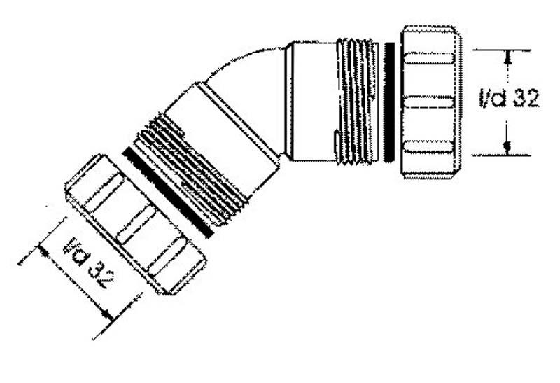 Kolanko 135 nakrętno-nakrętne 32x32mm