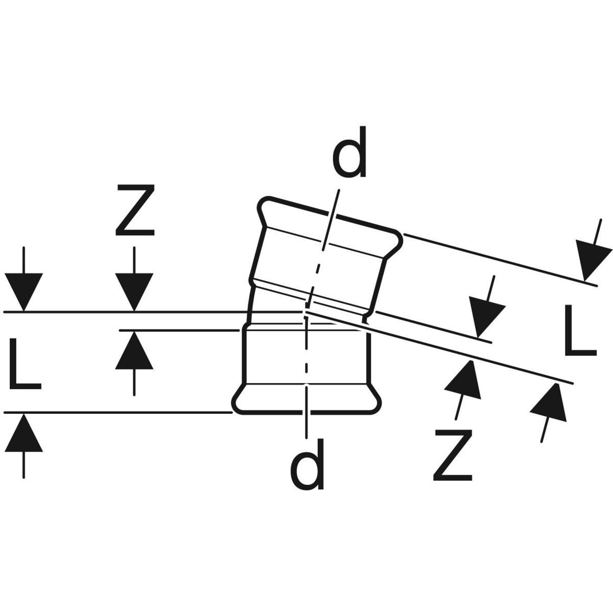 Kolano 15' GEBERIT Mapress Edelstahl, stal nierdzewna, 15 mm, DN 12 x 15 mm x DN 12 (mufa zaprasowywana x mufa zaprasowywana), (głębokość: 10 mm) z uszczelką