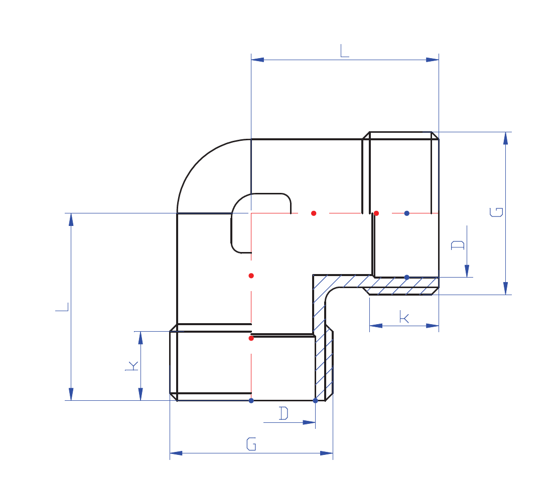 Kolano 90' RUMET mosiądz 1'' x 1'' (GZ), 38 mm