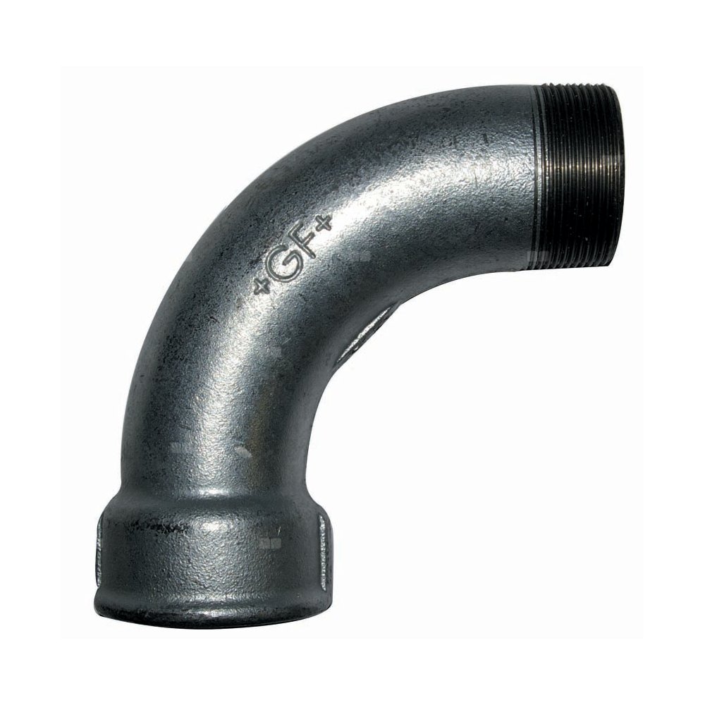 Kolano 90o, po obydwu stronach z gwintem zewnętrznym i wewnętrznym, do montażu w rurociągu tłocznym, z 1 zestawem osprzętu montażowego.