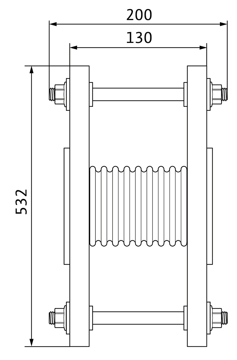 kompensatorem gumowym z luźnymi kołnierzami i ogranicznikiem długości z ustawieniem tłumiącym dźwięki, w celu wyrównania bocznych naprężeń i redukcji drgań