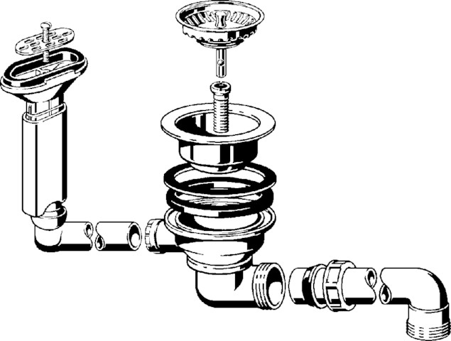 Komplet odpływowo-przelewowy nr wzoru 7139.153 G: 1½ fi: 114,5 do zlewozmywaków z otworem odpływowym fi 90