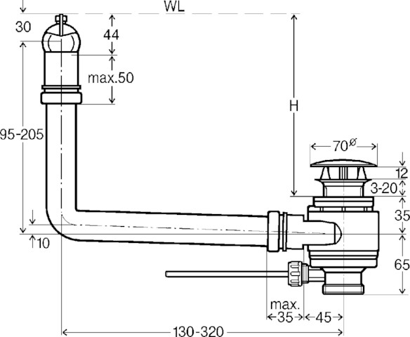 Komplet odpływowo-przelewowy VIEGA 54201 (akcesorium) do umywalki tworzywo sztuczne g 1 1/4'', fi 60