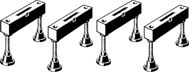Advantix-zestaw regulowanych nóżek, (wersja remontowa). Przeznaczenie: przezbrojenie odpływu liniowego Advantix na wysokość montażu 67 mm, Advantix-odpływy liniowe od dł. 1000 mm, tylko w połączeniu z: Advantix-syfon nr wzoru 4980.62, seria produkcyjna do 2015, nr wzoru 4980.97, nr kat. 691 745, ilość w zestawie: 4