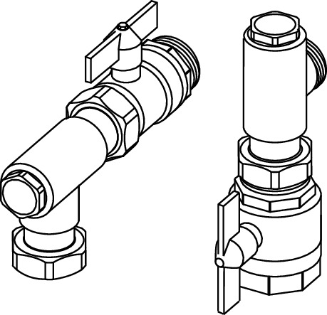 Zestaw kątowych zaworów kulowych przyłączeniowych do rozdzielacza TECEfloor składający się z zaworu zasilającego i powrotnego z przyłączami. Przyłącze rozdzielacza R 1", płaska uszczelka. Podstawowe przyłącze Rp 3/4" lub Rp 1", wraz z płaską uszczelką. Rozmiar montażowy 125 mm.