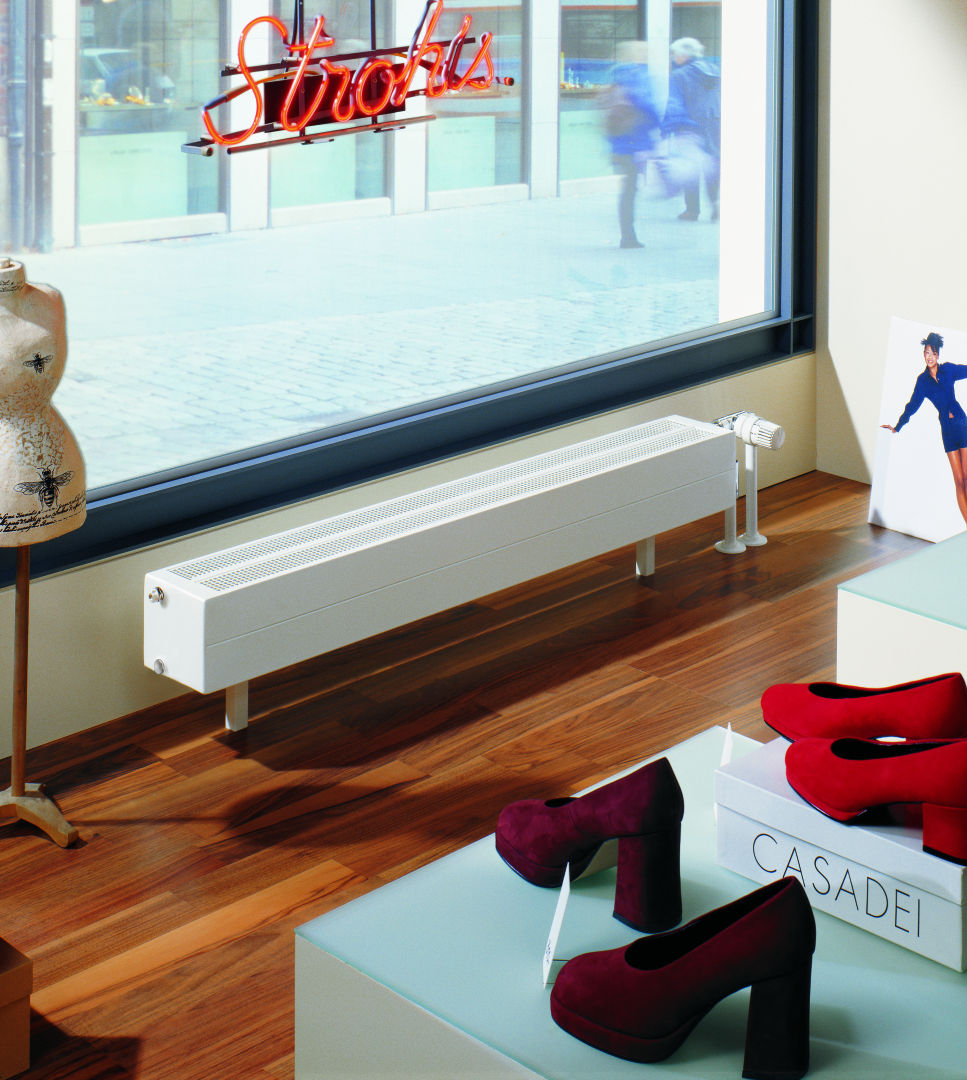 Konwektory Kermi o małych wysokościach konstrukcyjnych i dużej mocy cieplnej to doskonałe rozwiązanie polecane do pomieszczeń z dużymi przeszkleniami, takimi jak okna panoramiczne, wystawy, ogrody zimowe.