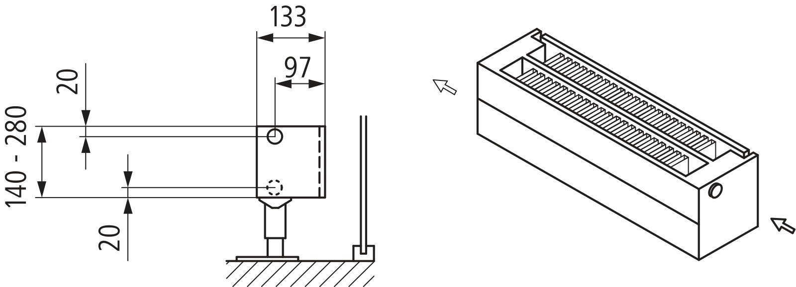 Konwektor Kermi L-Kon S Typ22 BH210x133x2400mm QN2242, weiß, 6bar, o. Abd., AB Uni.