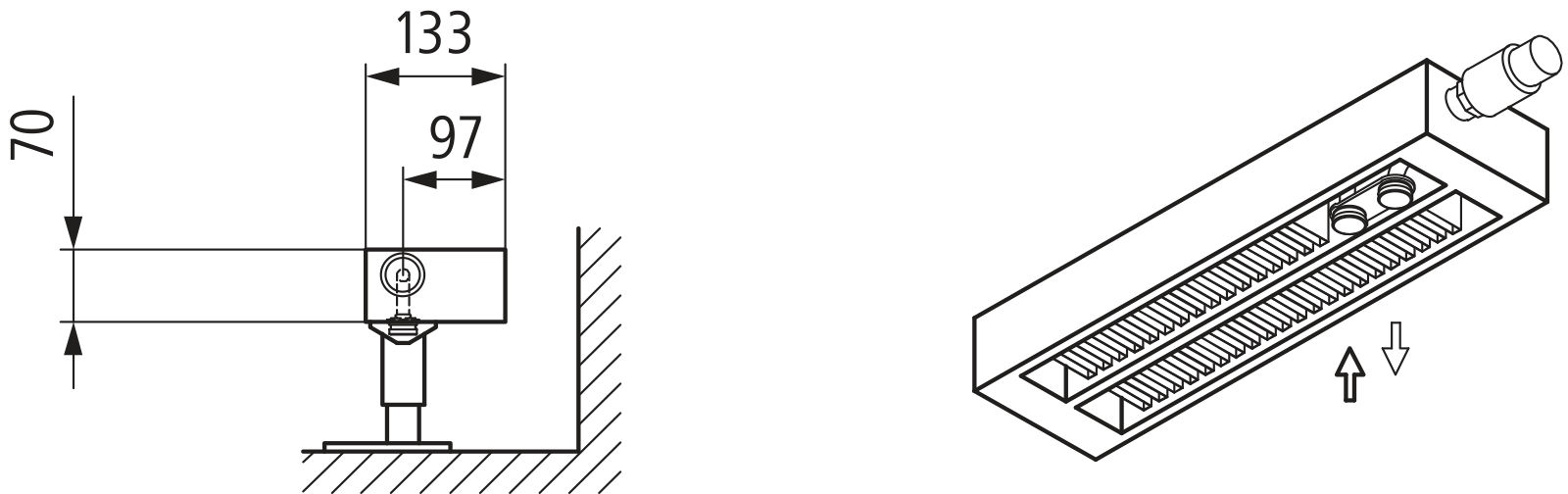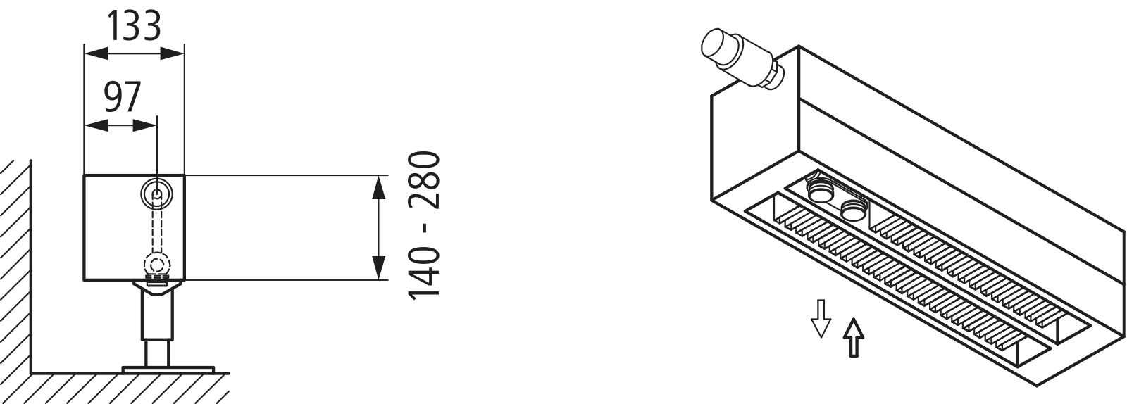 Konwektor zaworowy Kermi KNV. Z kompletną, zintegrowaną armaturą zaworową. Pomieszczenia o dużych powierzchniach przeszklonych wymagają szczególnych rozwiązań dotyczących ogrzewania. Konwektory zaworowe Kermi sprawdzają się tu idealnie. Eleganckie, niewielkich rozmiarów, o bardzo dużej mocy grzewczej – doskonale dopasowują się również do wystroju wnętrza. To znakomite połączenie atrakcyjnego wzornictwa i optymalnej możliwości regulacji mocy cieplnej. Dzięki zintegrowanej armaturze zaworowej przewody zasilania i powrotu nie przebiegają obok konwektora. Wpływa to pozytywnie na wygląd konwektora, pozwala także skrócić czas montażu.