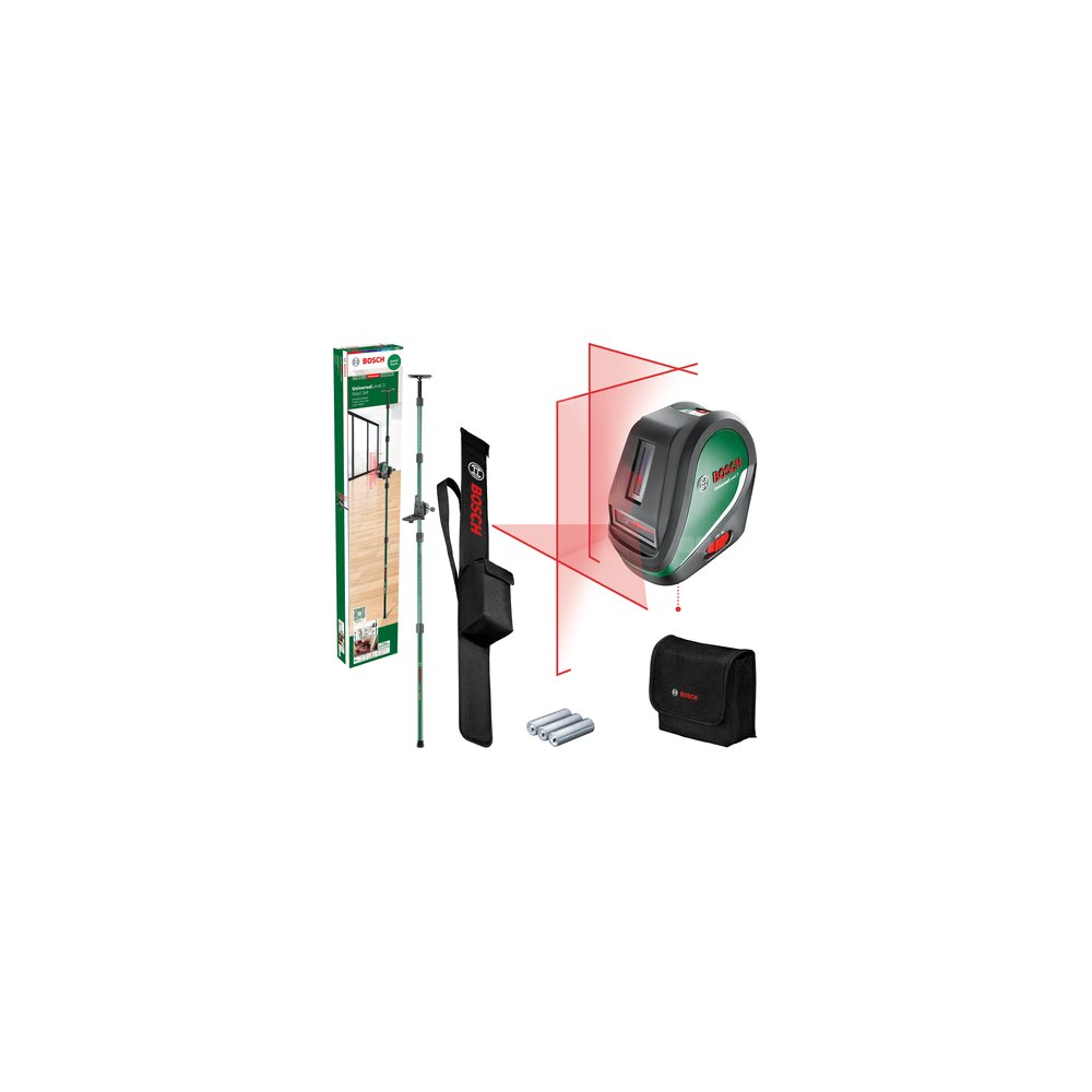Bez względu na to, czy chodzi o układanie nowych płytek podłogowych czy instalowanie kabiny prysznicowej lub ścian w zabudowie suchej, laser Bosch UniversalLevel 3 ułatwia wykonanie skomplikowanych zadań. Dzięki skrzyżowanym liniom i drugiej pionowej linii laserowej lasera krzyżowego można używać do wyrównywania elementów w poziomie i pionie oraz do wyrównywania elementów pod katem prostym. Druga pionowa linia laserowa jest linią referencyjną 90° dla pierwszej linii, umożliwiając precyzyjne wyrównywanie elementów w dowolnym pomieszczeniu. Używaj funkcji nachylenia do prac poza zakresem automatycznej niwelacji urządzenia, takich jak instalowanie poręczy schodowych. Kąt otwarcia wiązki 120° pozwala wyświetlać dłuższe linie laserowe i zapewnia dokładność nawet przy niewielkiej odległości. Urządzenie posiada także zintegrowany gwint 1/4'' do mocowania na statywie, oferuje dokładność niwelacyjną ±0,5 mm/m i zasięg maksymalny 10 m.