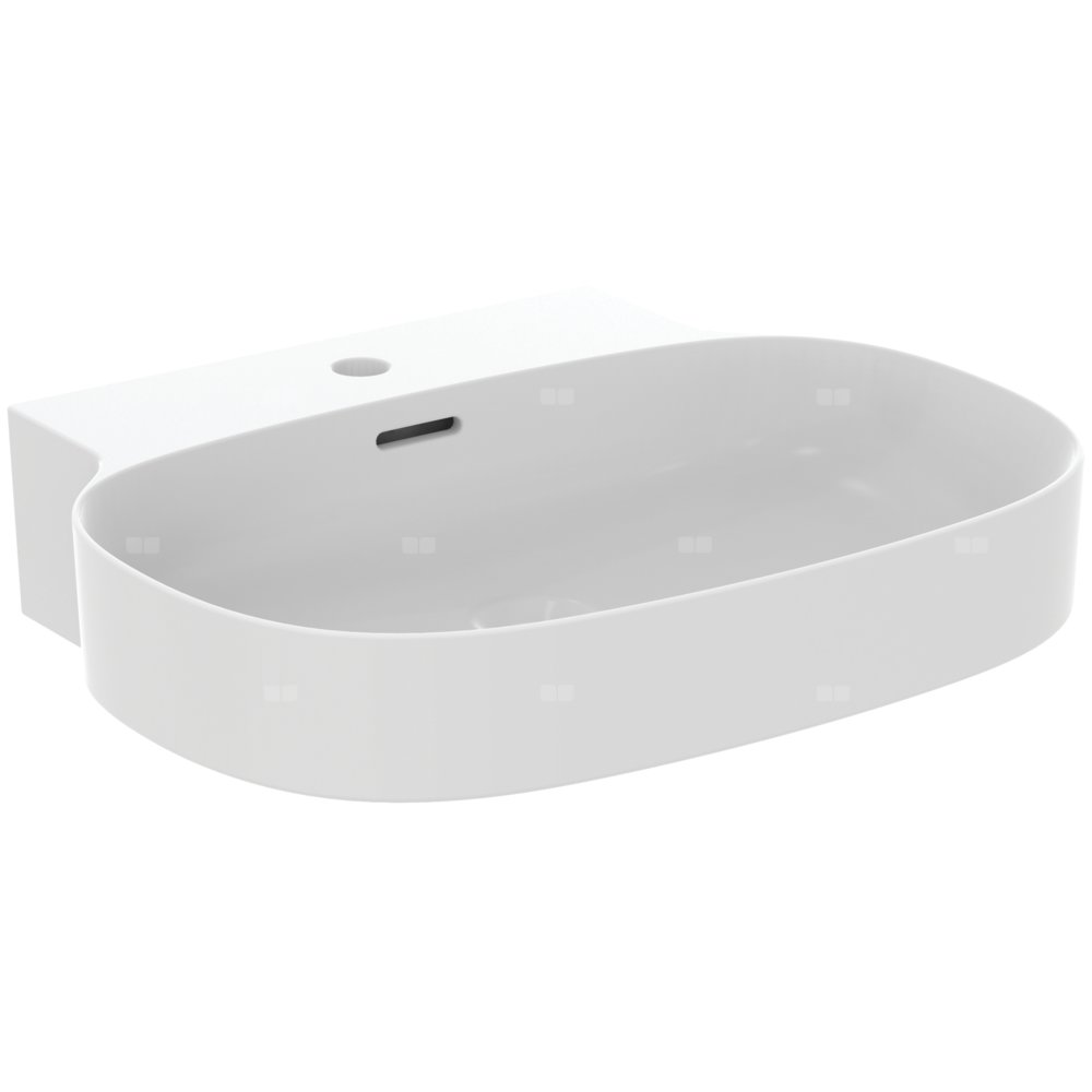 Umywalka Linda-X do montażu na meblach lub blacie (szlifowany spód). Z wybitym otworem na baterię, z przelewem. W komplecie szablon do wycinania TT0299731.