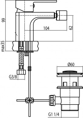 LOFT WHITE bateria bidetowa, korek spustowy, white&chrom