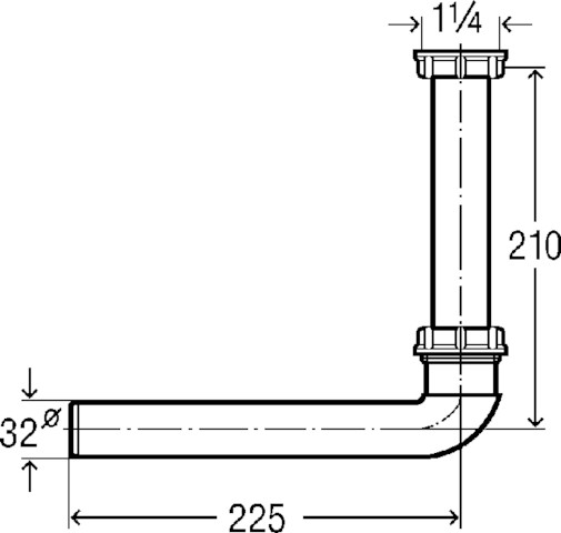 Łuk odpływowy 90 st. tworzywo sztuczne, nr wzoru 5632.2 G: 1¼ DN: 32 L: 225
