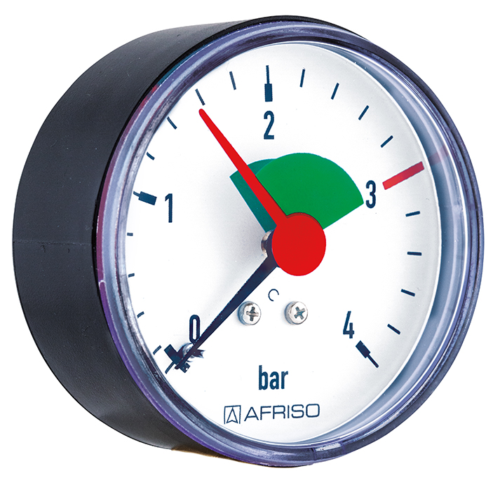 Manometr z rurką Bourdona AFRISO HZ grzewczy 0/4 bar G3/8B aksjalne fi 63 mm, kl. 2.5%