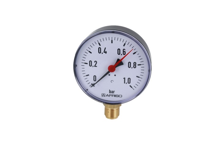 Manometr z rurką Bourdona AFRISO RF grzewczy 0/1 bar G1/2B radialne fi 100 mm, kl. 1.6%