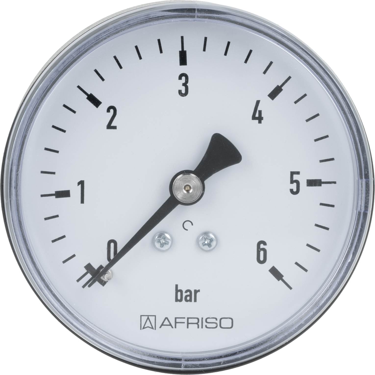 Manometr z rurką Bourdona AFRISO RF grzewczy 0/6 bar G1/4B aksjalne fi 63 mm, kl. 2.5%