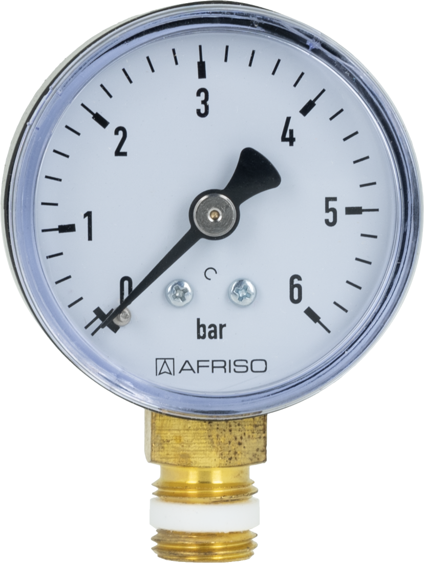 Manometr z rurką Bourdona AFRISO RF grzewczy 0/6 bar G1/4B radialne fi 50 mm, kl. 2.5%