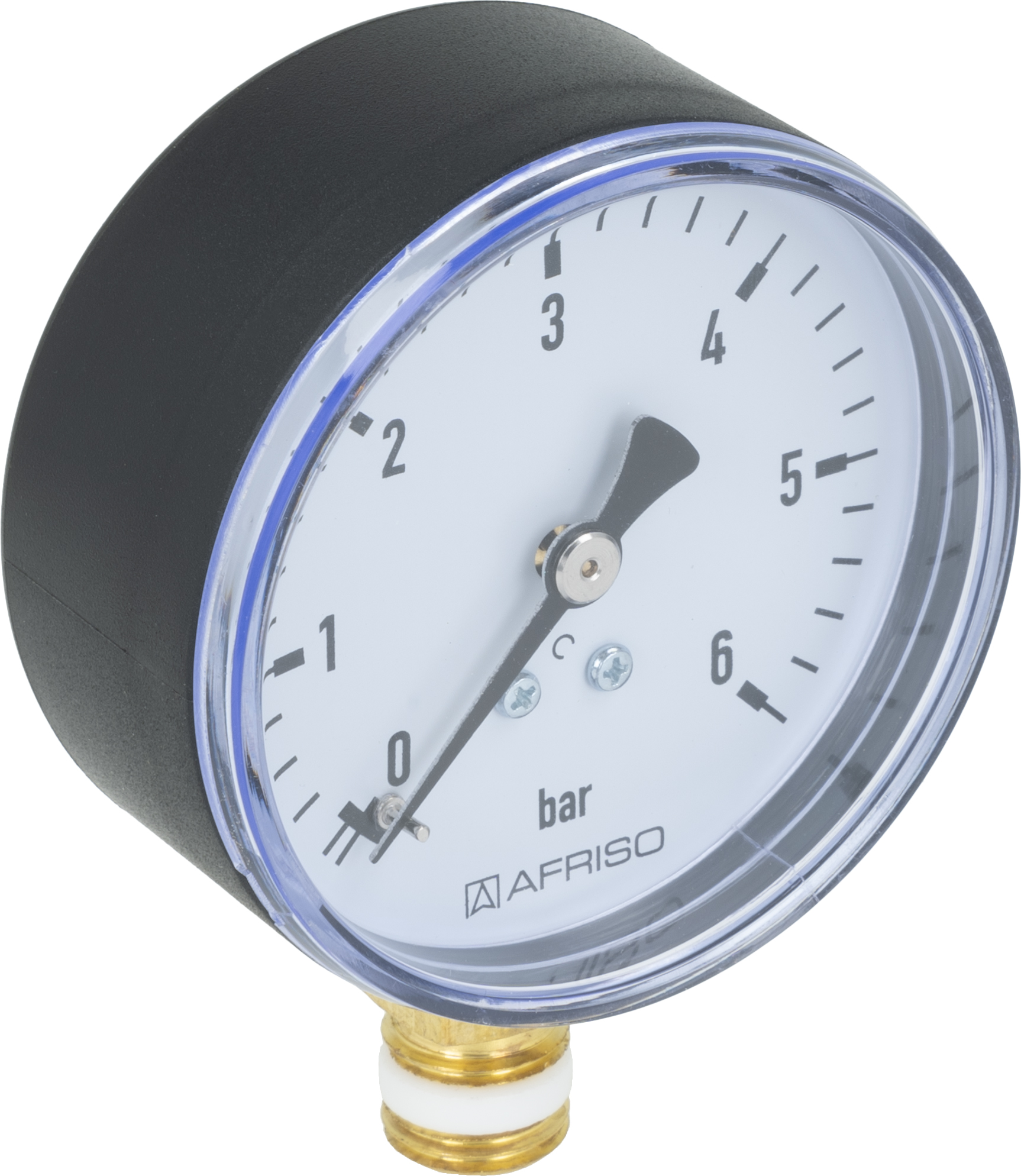 Manometr z rurką Bourdona AFRISO RF grzewczy 0/6 bar G1/4B radialne fi 63 mm, kl. 2.5%