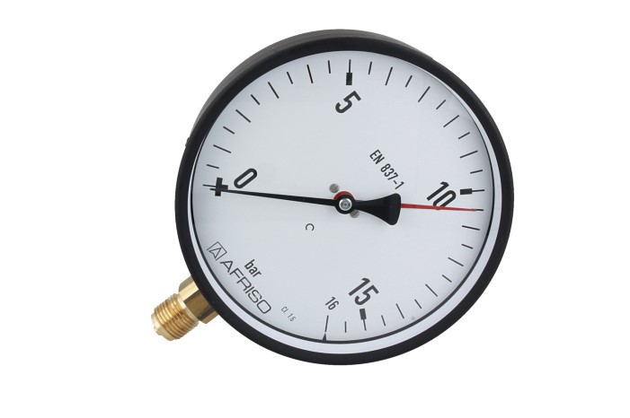 Manometr z rurką Bourdona AFRISO RF standardowy 0/16 bar G1/2B radialne fi 160 mm, kl. 1.6%