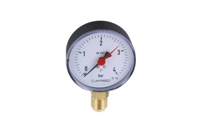 Manometr z rurką Bourdona AFRISO RF standardowy 0/4 bar G1/2B radialne fi 80 mm, kl. 1.6%