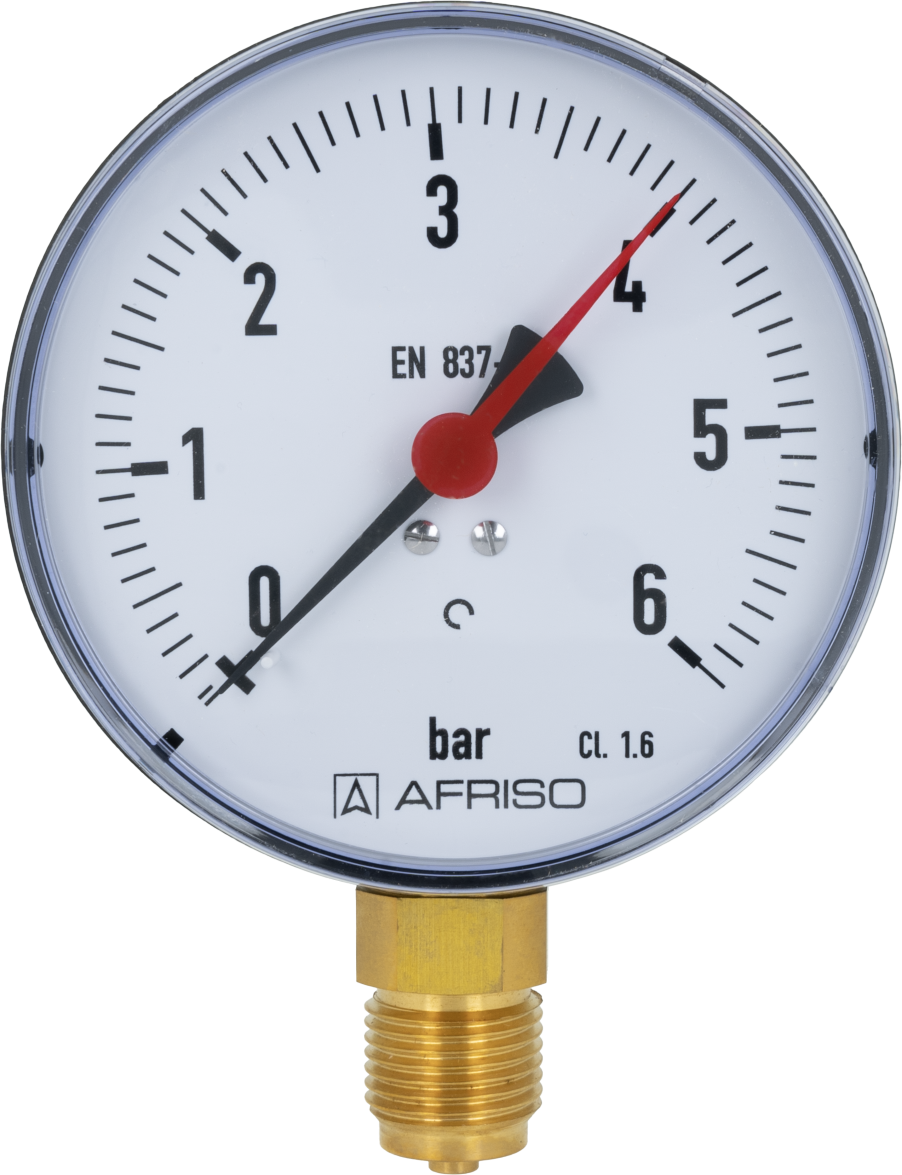 Manometr z rurką Bourdona AFRISO RF standardowy 0/6 bar G1/2B radialne fi 100 mm, kl. 1.6%