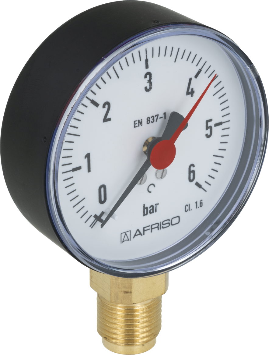 Manometr z rurką Bourdona AFRISO RF standardowy 0/6 bar G1/2B radialne fi 80 mm, kl. 1.6%