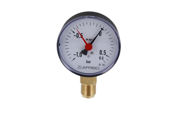 Manometr z rurką Bourdona AFRISO RF standardowy -1/0,6 bar G1/2B radialne fi 80 mm, kl. 1.6%