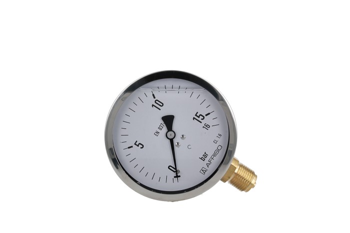 Manometr z rurką Bourdona AFRISO RF wstrząsoodporny 0/16 bar G1/2B radialne fi 100 mm, kl. 1.6%