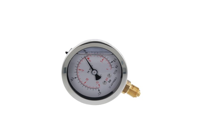 Manometr z rurką Bourdona AFRISO RF wstrząsoodporny -1/0,6 bar G1/4B radialne fi 63 mm, kl. 1.6%