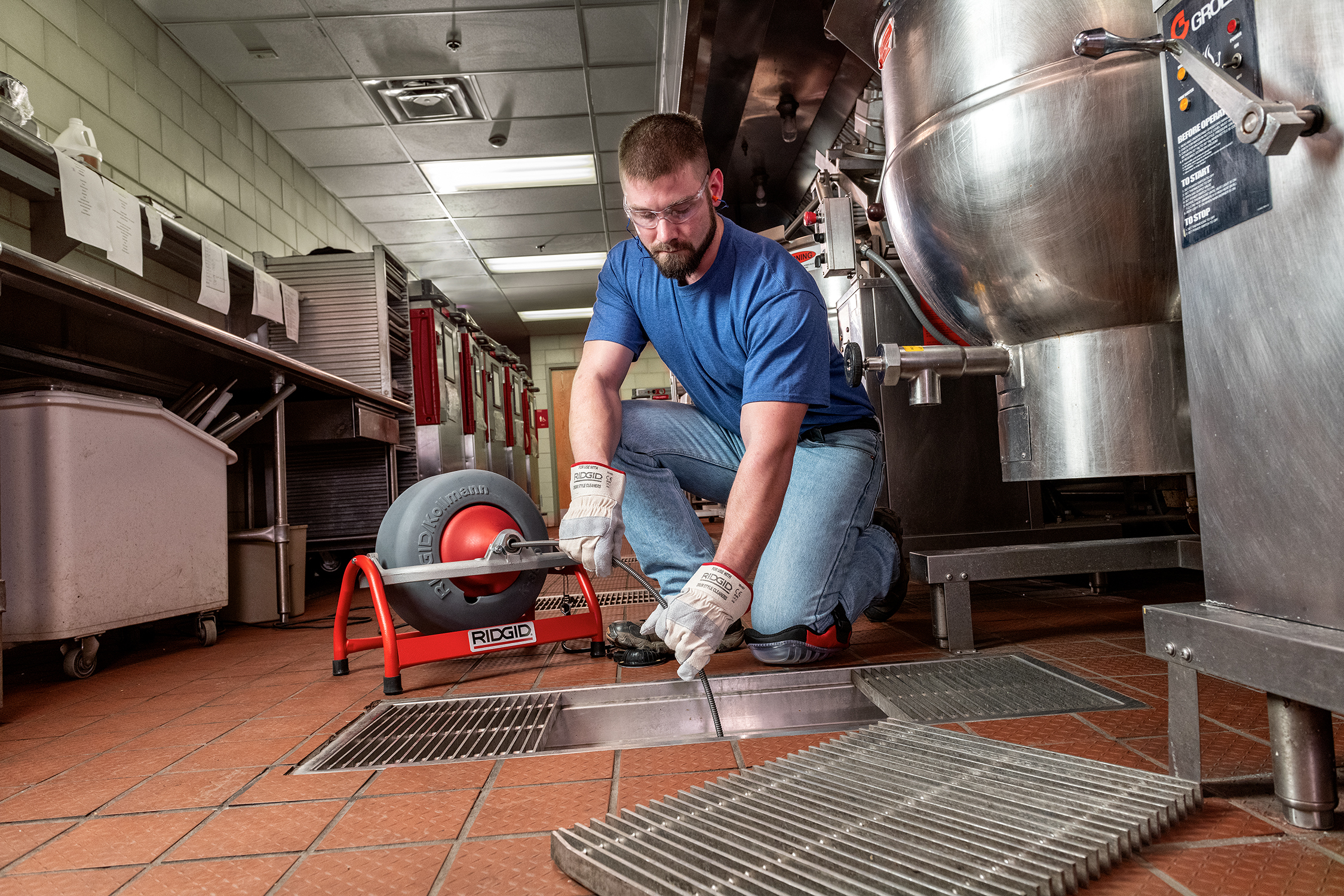 Maszyna bębnowa K–3800 do czyszczenia odpływów o średnicy 3/4" - 4" (20 - 110 mm) z następującym wyposażeniem: – System AUTOFEED – Sprężyna C–32, 3⁄8" (10 mm) x 75' (23 m) – Wiertło maczugowe T–202 – Końcówka nożowa „C” T–205 – Końcówka nożowa łopatkowa T–211 – Kołek łączący A–13 – Rękawice skórzane RIDGID do czyszczenia odpływów. Mocna, łatwa do przemieszczania, uniwersalna maszyna do czyszczenia odpływów wewnątrz pomieszczeń. Wymaga jedynie minimalnego przygotowania do czyszczenia linii zlewów, odpływów podłogowych i wywietrzników dachowych.Wytrzymały, odporny na korozję, formowany bęben sprężyny nie ulega wgnieceniom ani nie rdzewieje. Regulacja przechyłu bębna umożliwia ustawienie właściwego kąta podawania sprężyny. Bęben wewnętrzny zabezpiecza przed skręceniem sprężyny wewnątrz bębna. Szybkozłączka i wbudowane uchwyty bębna sprężyny umożliwiają łatwą wymianę sprężyny i przemieszczanie.Maksymalna pojemność bębna wynosi 30,5 m (100') długości ciągłej w przypadku sprężyny 10 mm (3⁄8") albo 27 m (90') w przypadku sprężyny 12 mm (1⁄2").Sprężyna 10 mm (3⁄8") najlepsza w przypadku linii o średnicy od 40 mm (1 1⁄2" ) do 75 mm (3") o długości do 30,5 m (100').Sprężyna 12 mm (1⁄2") najlepsza w przypadku linii o średnicy od 50 mm (2") do 110 mm (4") o długości do 27 m (90').Opcjonalny bęben do umywalek mieści do 15 m (50') sprężyny 8 mm (5/16") lub 6 mm (1/4"). / Idealny do czyszczenia przez syfony zlewowe od 20 mm (3/4") do 40 mm (1 1/2") / Mocny silnik uniwersalny 175W obraca sprężynę z prędkością 240 obr./min. Gdy sprężyna trafi na zator, silnik automatycznie redukuje bieg, aby zwiększyć moc i zapewnić operatorowi większą kontrolę. / Połączenie narzędzi ze sprężyną zajmuje tylko kilka sekund. / Wytrzymały system AUTOFEED®. / W komplecie skórzane rękawice RIDGID® do czyszczenia odpływów oraz instrukcja obsługi.