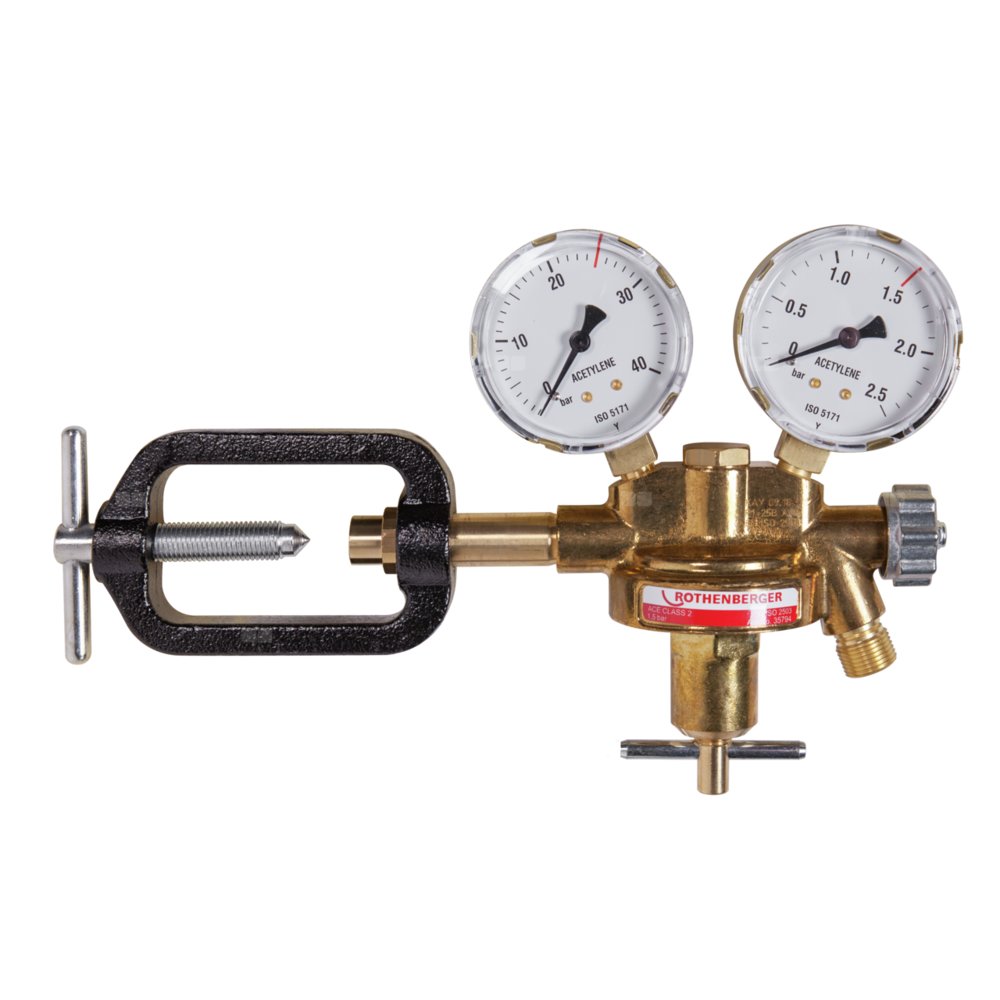 Reduktor ciśnienia acetylenu ROTHENBERGER z manometrem zgodny z normą ISO 5171 zapewnia wysoki standard bezpieczeństwa dzięki zaworowi odcinającemu i bezpieczeństwa. Przyczynia się do tego również solidna konstrukcja z tłoczonego mosiądzu.