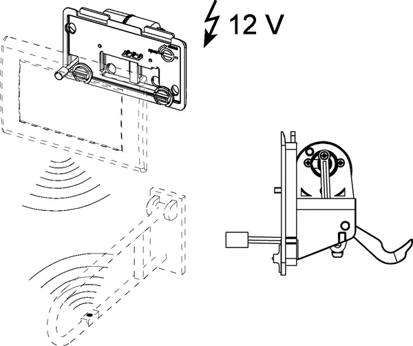 Mechanizm spłukujący elektroniczny do WC TECE planus 12 V, przycisk elektryczny montowany na poręczy - wersja bezprzewodowa