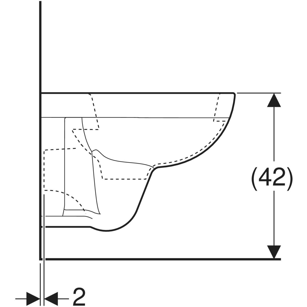 Wiszący Ceramiczna miska WC lejowa Z krawędzią Typ 1, pełna ilość 6 / 4 l, wg EN 997 Typ 2 wg EN 997 Spłukuje ilością 4 l Krótka Do spłuczek podtynkowych Do zaworów spłukujących Do montażu w małych łazienkach i w łazienkach gościnnych Materiał: Ceramika sanitarna Kolor główny: Biały Zawartość: Miska ustępowa