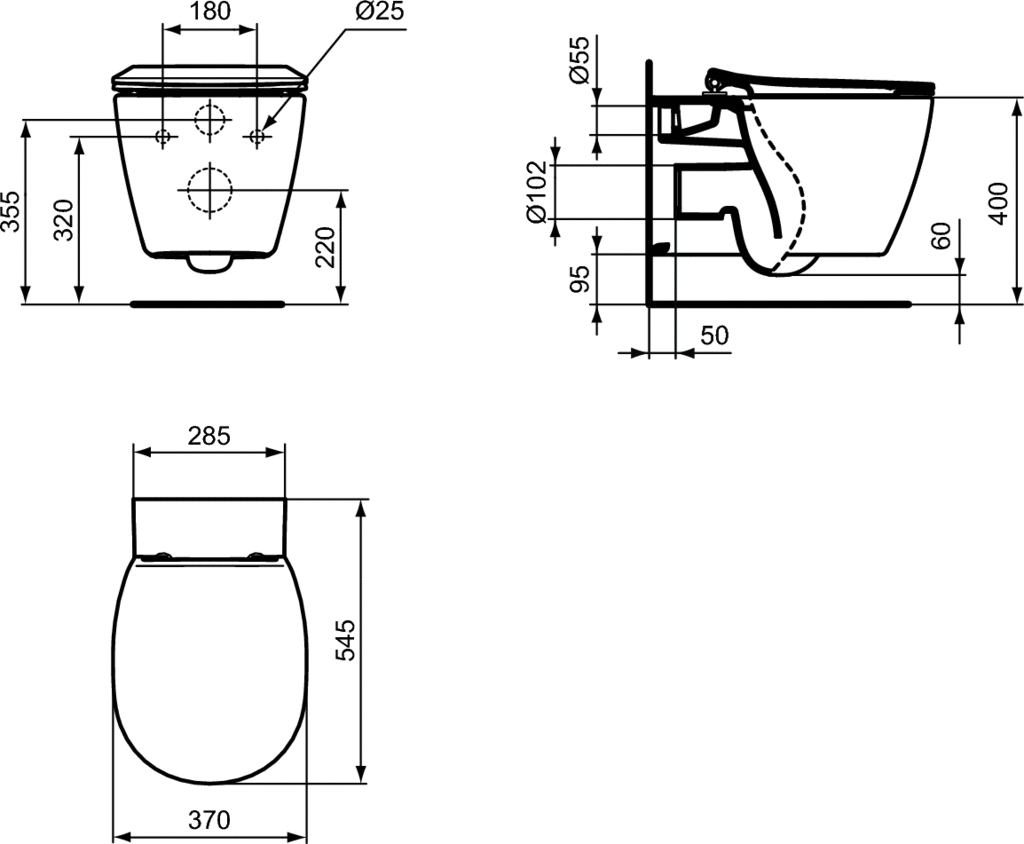 Odpływ poziomy. Zestaw montażowy TT0299327 w komplecie (w pełni ukryty system montażu - bez otworów). Indywidulane opakowanie kartonowe. EN 997. Uwaga: Zależnie od zastosowanego stelaża podtynkowego i grubości ściany, konieczne może być oddzielne zamówienie przedłużonej rury odpływowej PCV o długości 280 mm – kod towaru W872367. Konieczne dodatkowe elementy: Deska sedesowa typu Thin, z duroplastu E772301. Deska sedesowa typu Thin, z duroplastu, wolnoopadająca E772401. Deska sedesowa, z duroplastu E712801. Deska sedesowa, z duroplastu, wolnoopadająca E712701. Zalecane dodatkowe elementy: Rura odpływowa PCV do stelaża podtynkowego Ø100mm, L=280mm W872367. Ogranicznik wypływu wody (do zastosowania w przypadku spłukiwania od 6 do 9 l) (WW965956).
