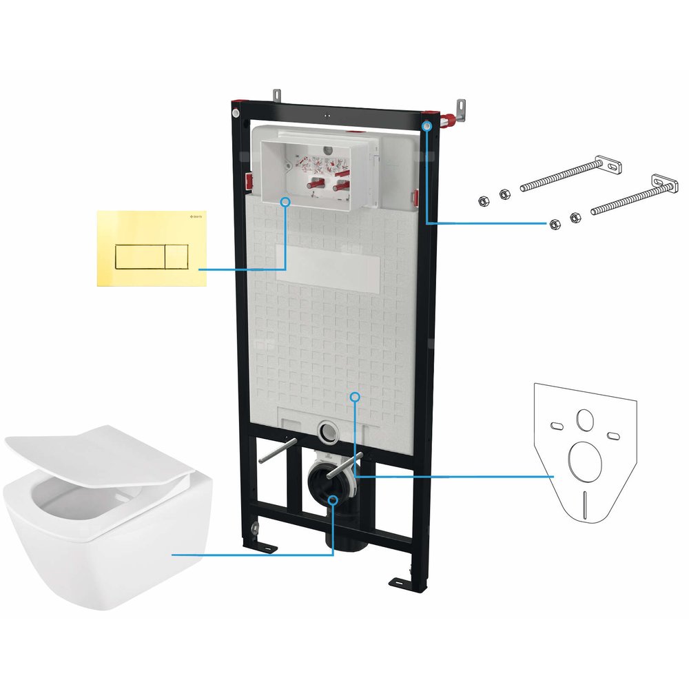 Zestaw WC z wiszącą miską pomyślany został z myślą o wysokiej estetyce pomieszczenia oraz łatwości sprzątania. Trwała ceramika wysokiej jakości nie pęka i nie zmienia koloru nawet po długim czasie użytkowania, co zostało potwierdzone badaniami Deante. Uniwersalny, klasyczny, biały kolor zestawu WC nadaje pomieszczeniu elegancji. Przystosowany do instalacji podtynkowych. Jest to kompletny zestaw 6 w 1, w skład którego wchodzi: stelaż podtynkowy, miska bezkołnierzowa WC, cicho opadająca deska, elegancki przycisk spłukujący, mata amortyzująca i śruby montażowe.