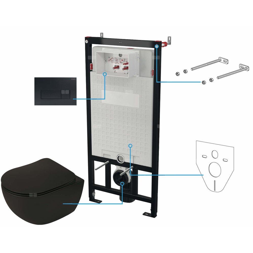Miska wisząca peonia nero + deska + stelaż + przycisk nero