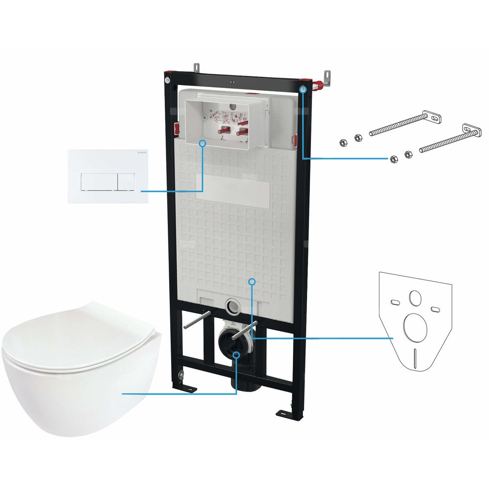 Miska wisząca silia biała + deska + stelaż + przycisk bianco