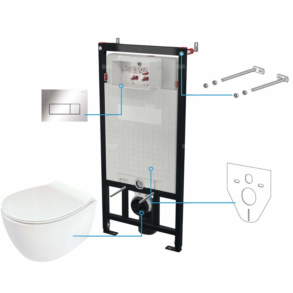 Miska wisząca silia biała + deska + stelaż + przycisk chrom