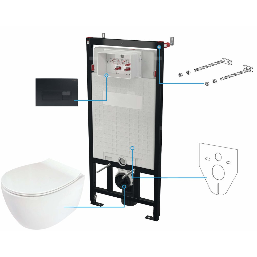 Miska wisząca silia biała + deska + stelaż + przycisk nero