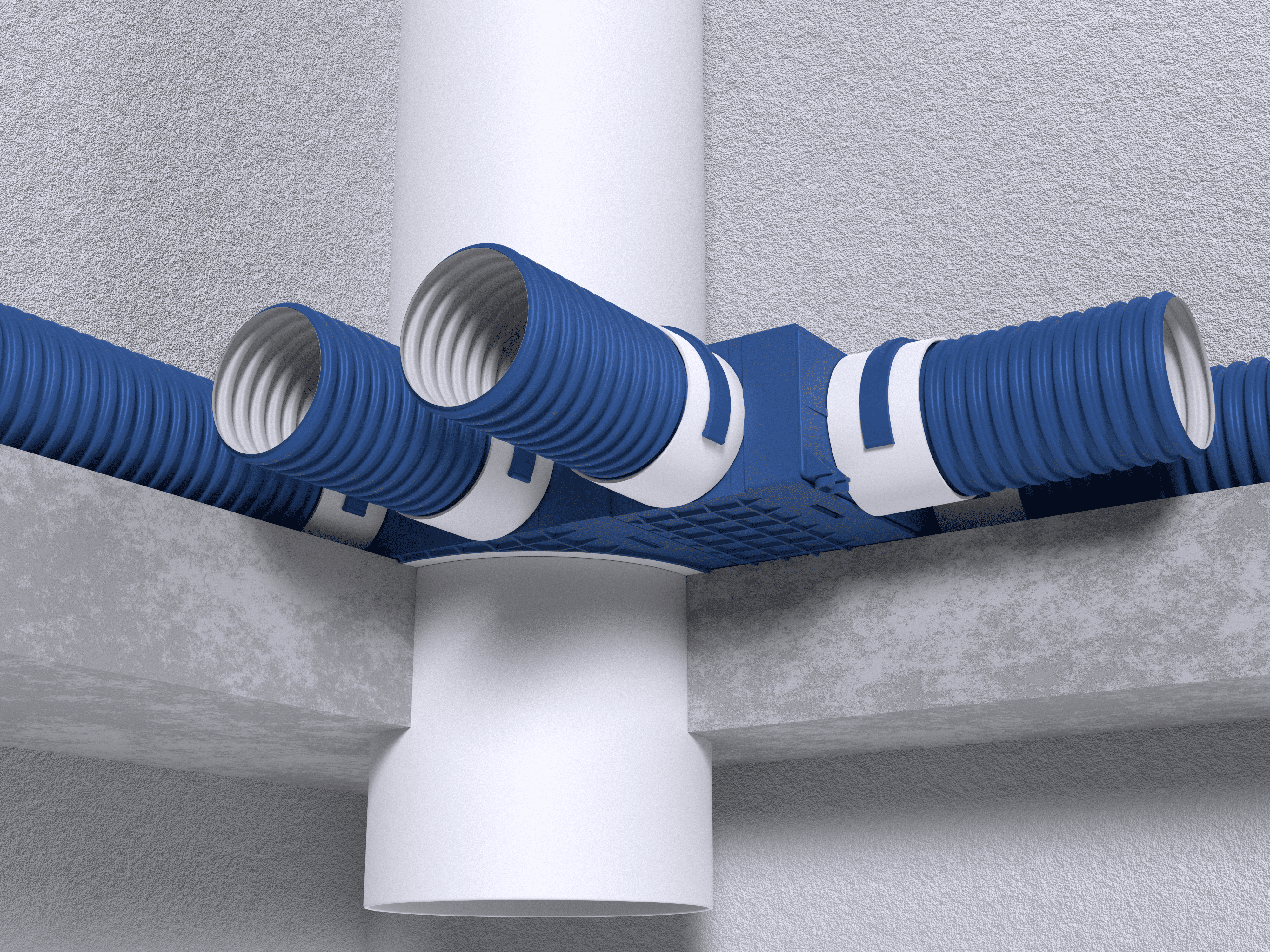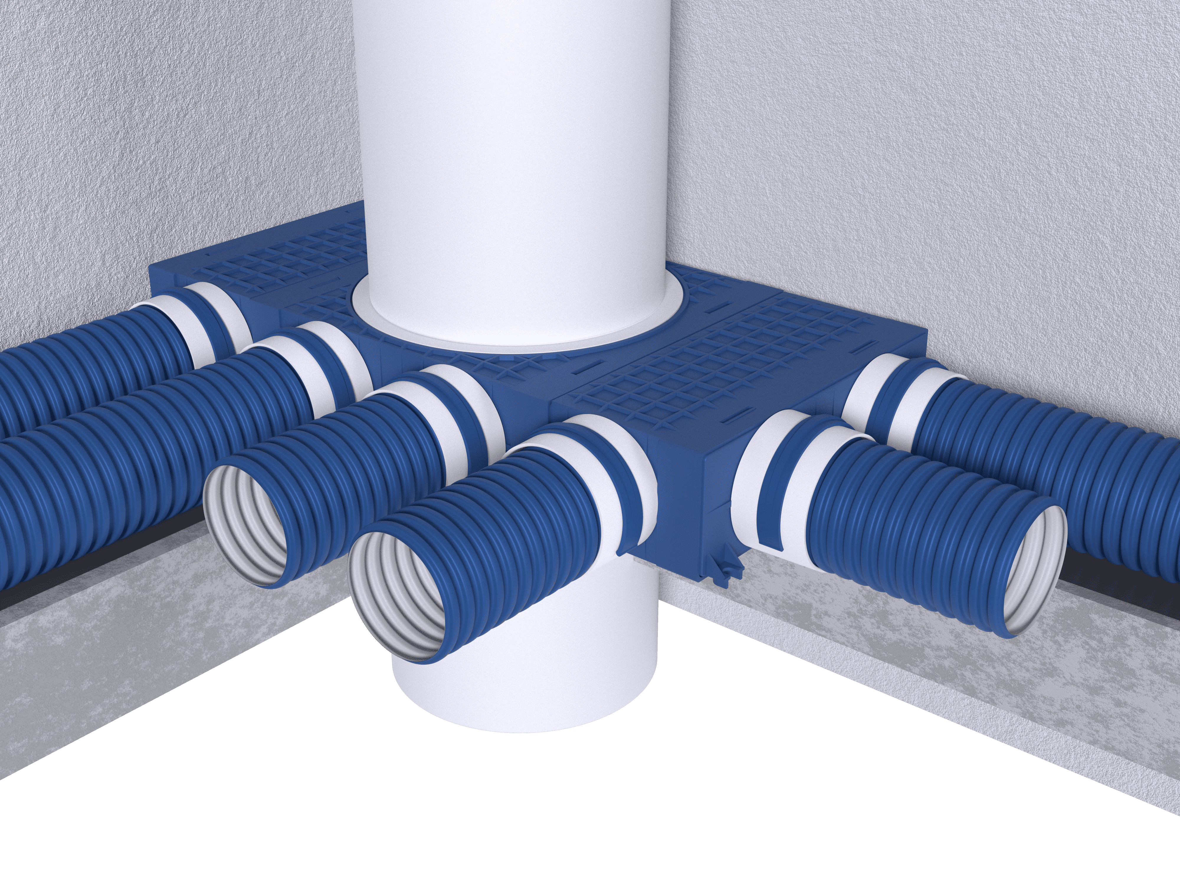 Moduł bazowy przelotowy (MPBVT+75) to nowa kształtka wchodząca w skład systemu VENTIFLEX PLUS, dzięki której można zbudować przelotowy rozdzielacz.