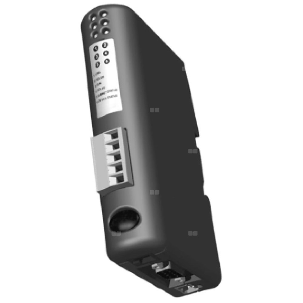 Obudowa z materiału izolacyjnego do montażu w szafie sterowniczej, z przyłączem interfejsu i diodami diagnostycznymi, mocowanie na szynie nośnej typu DIN 35 mm.