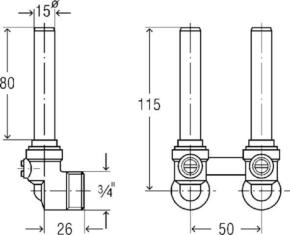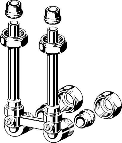Moduł przyłączeniowy kątowy VIEGA 10977 mosiądz (niklowanie) 3/4'' wewnętrzne x 15 mm, rozstaw 50 mm do grzejników