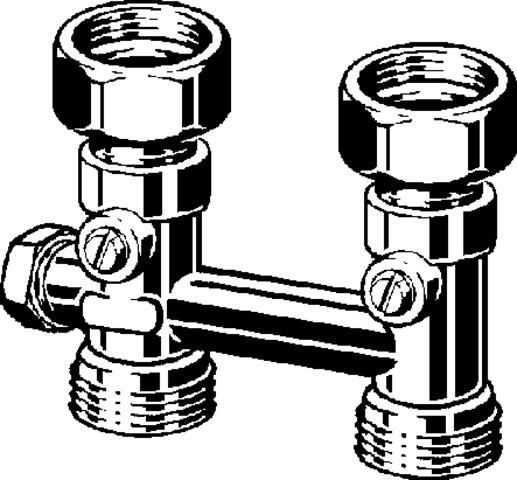 Moduł przyłączeniowy prosty kątowy VIEGA 10960 mosiądz (niklowanie) 3/4'' zewnętrzne x 3/4'' Eurokonus, rozstaw 50 mm do grzejników