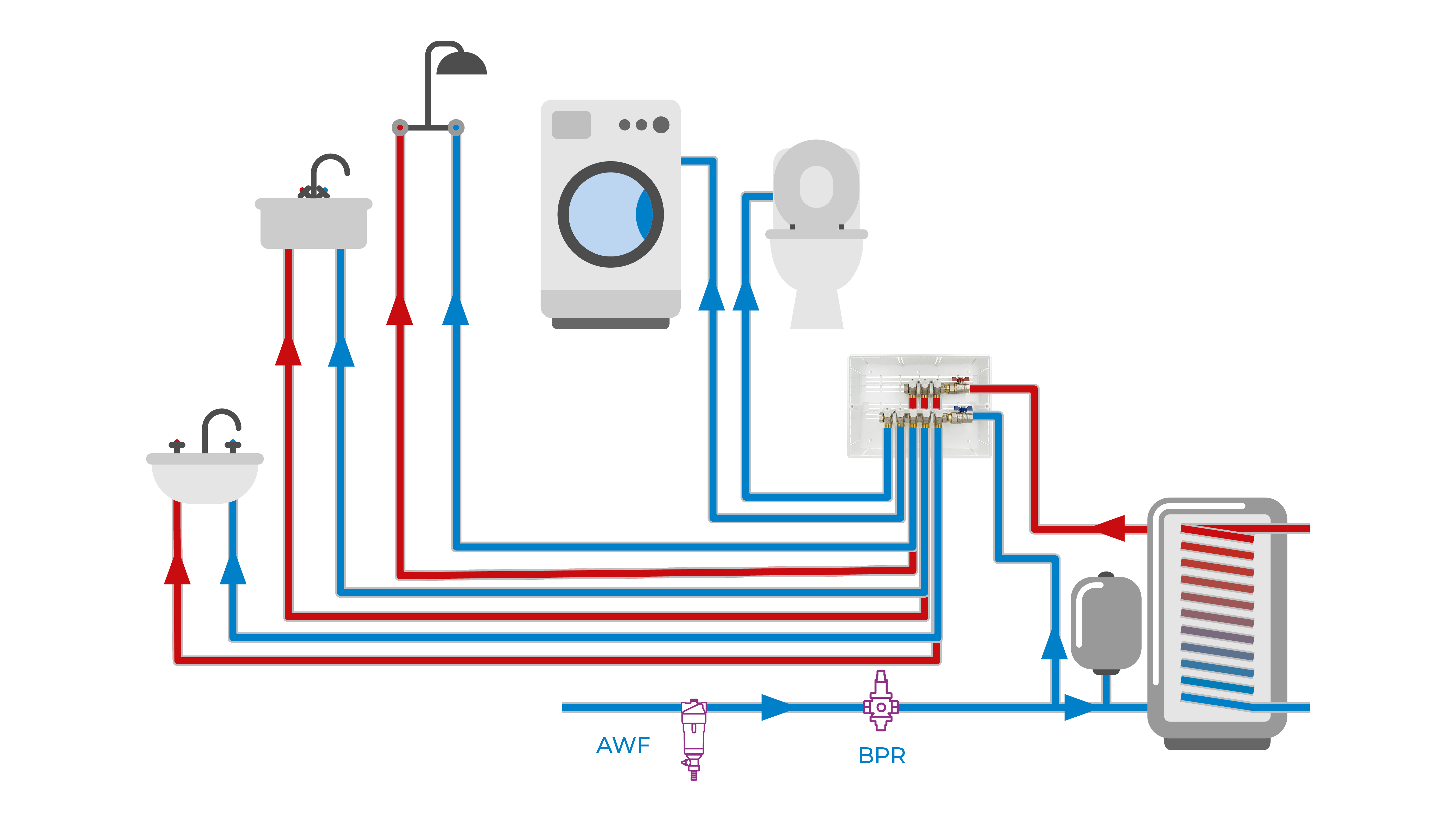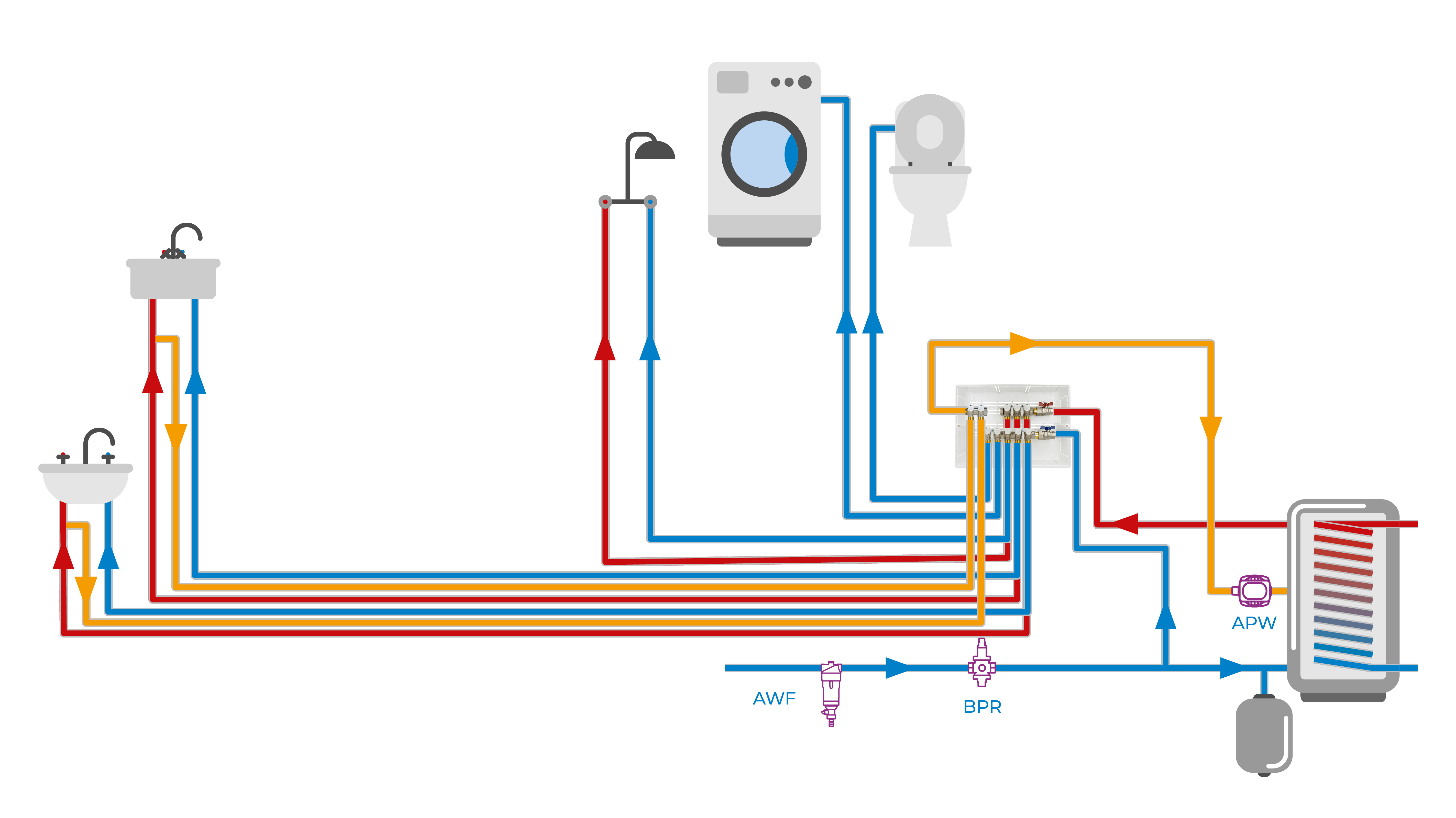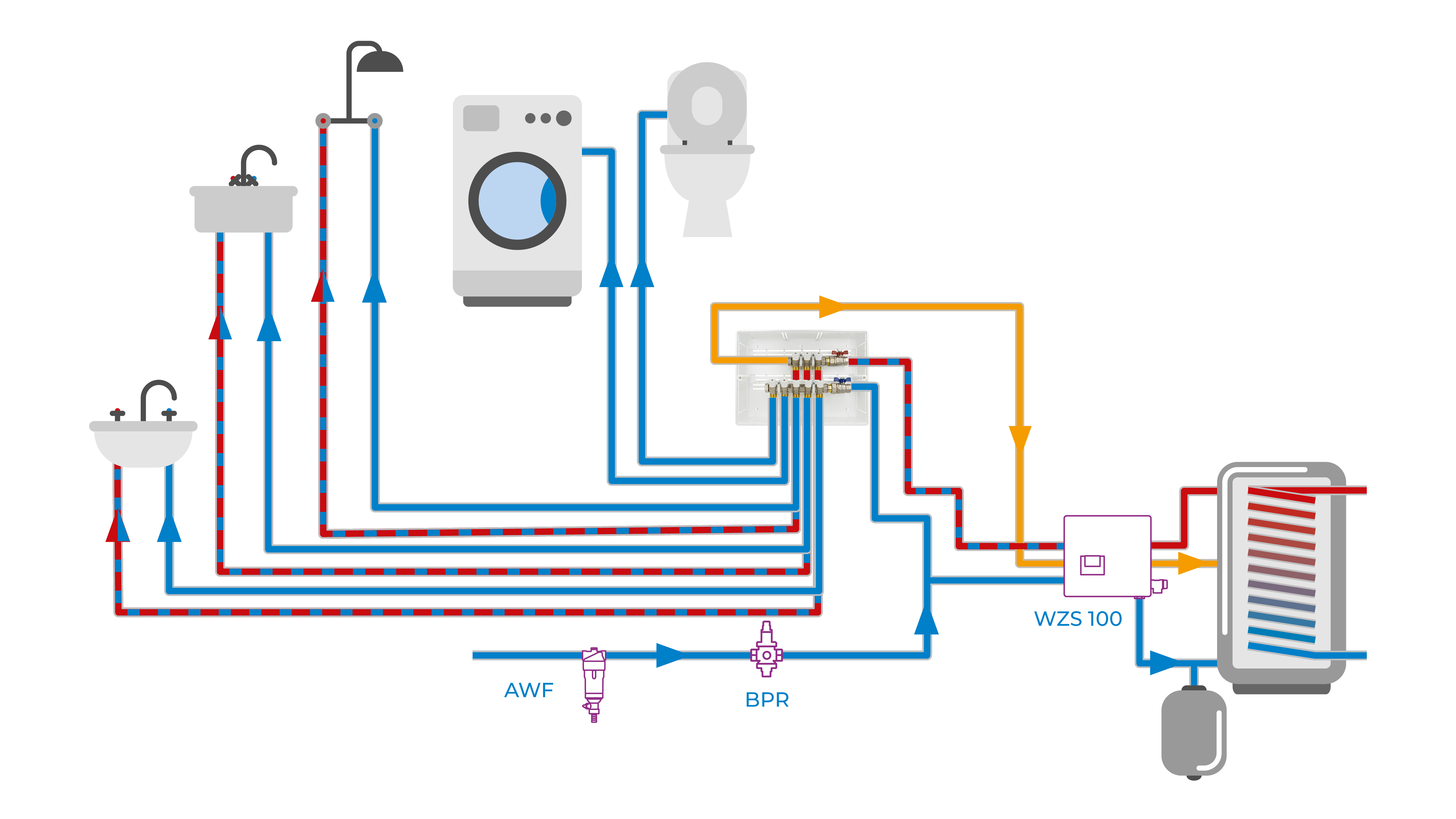 Zawory odcinające umożliwiają niezależne odcięcie przepływu do danego punktu poboru.
