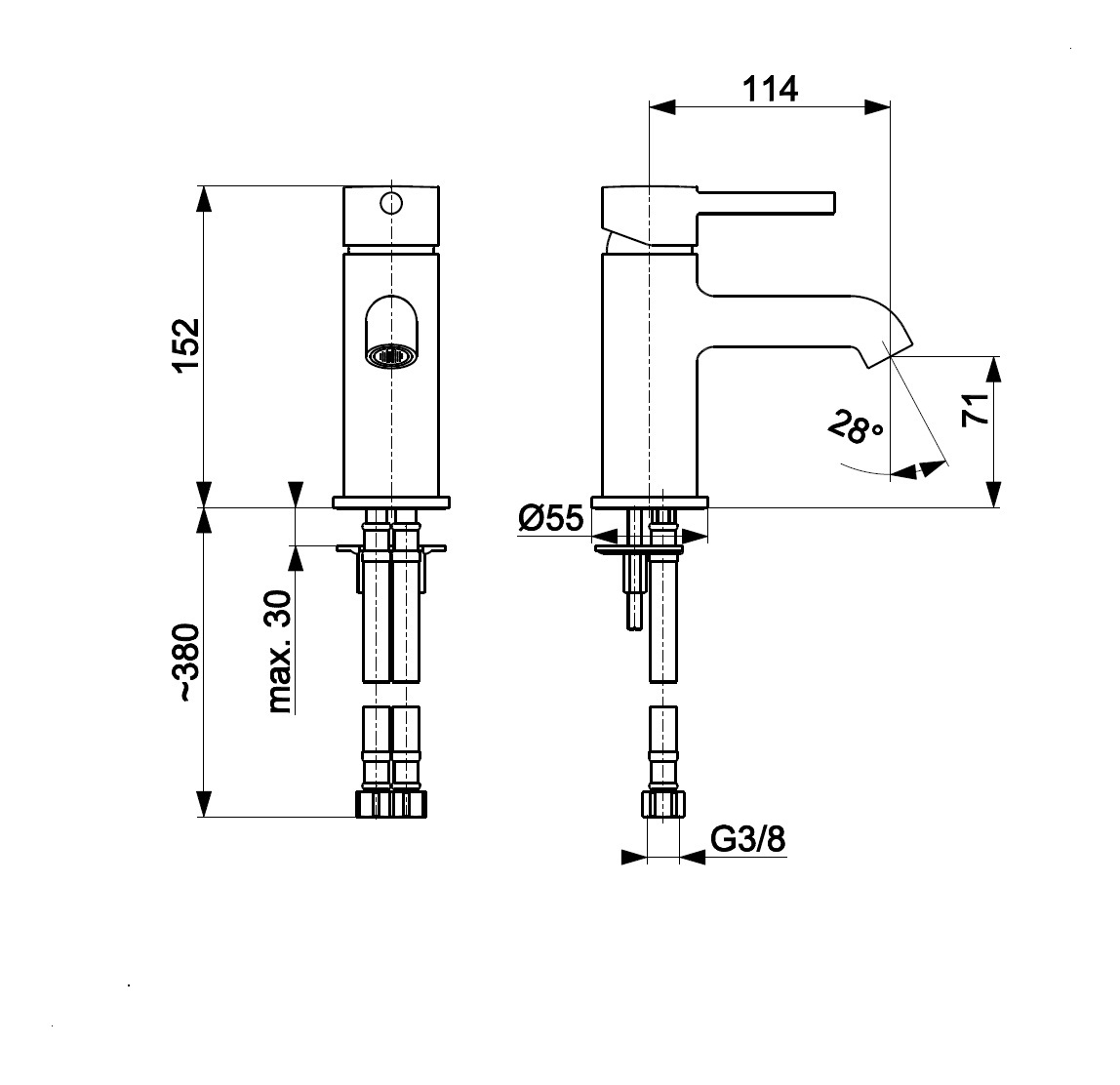 Bateria moza umywalkowa, stojąca, z korkiem klik-Klak, pvd gun metal grey