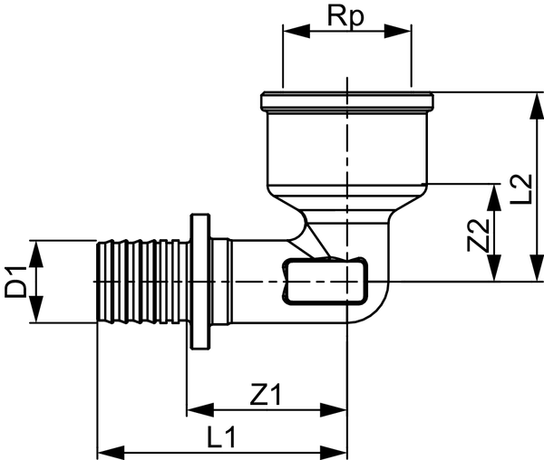 TECEflex mufa przejściowa kątowa z mosiądzu standard